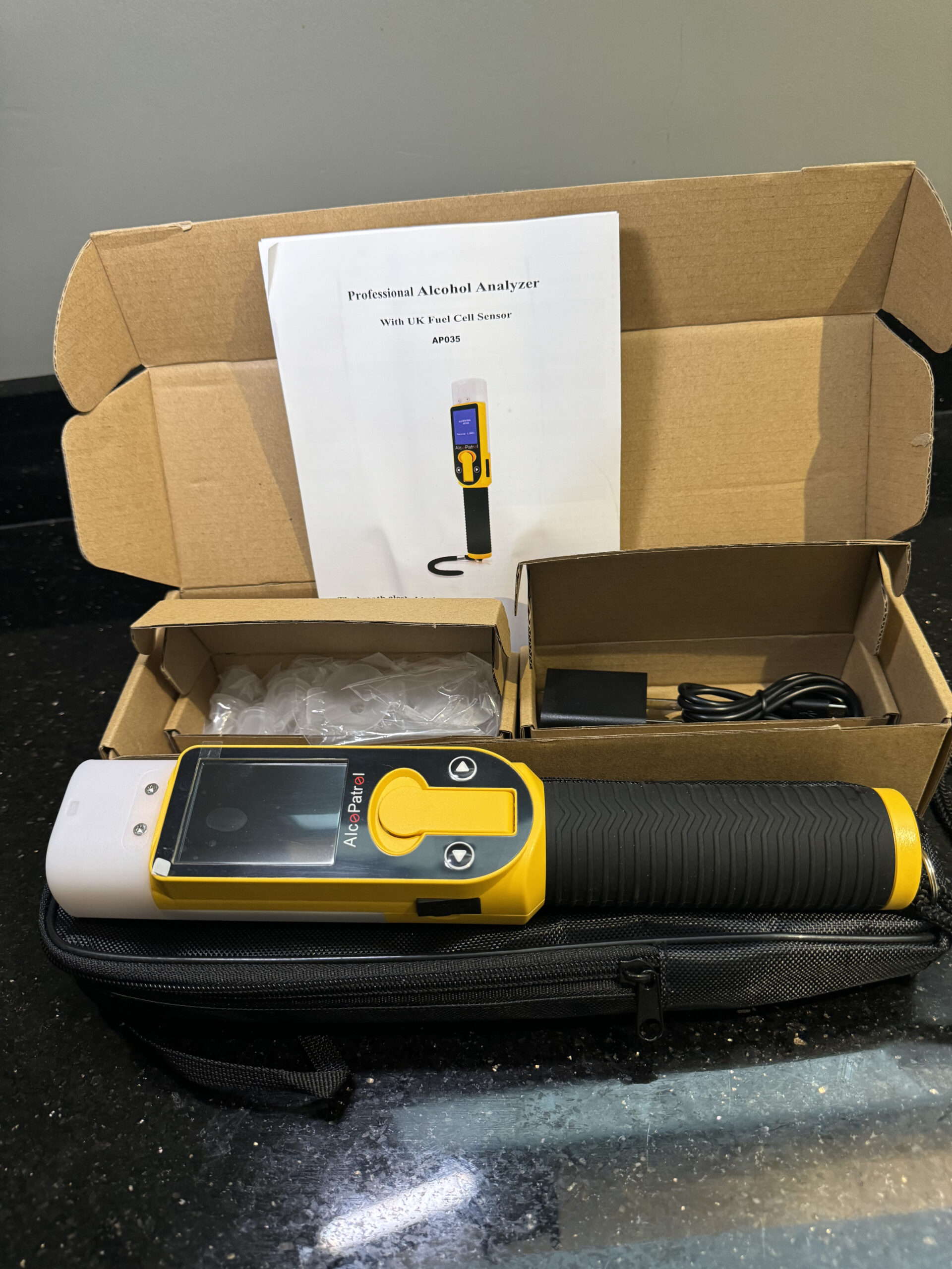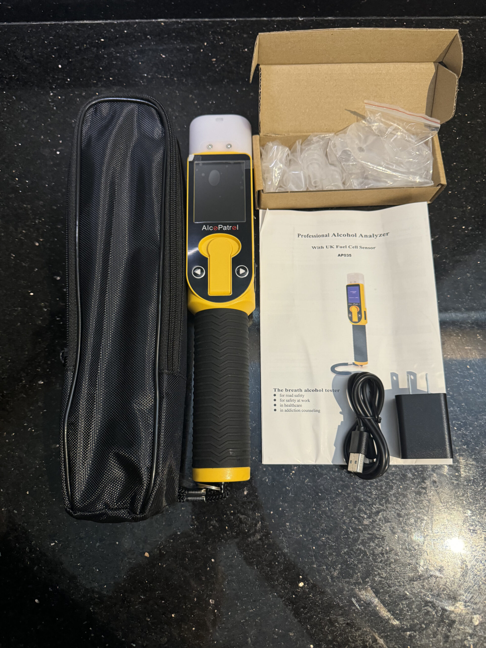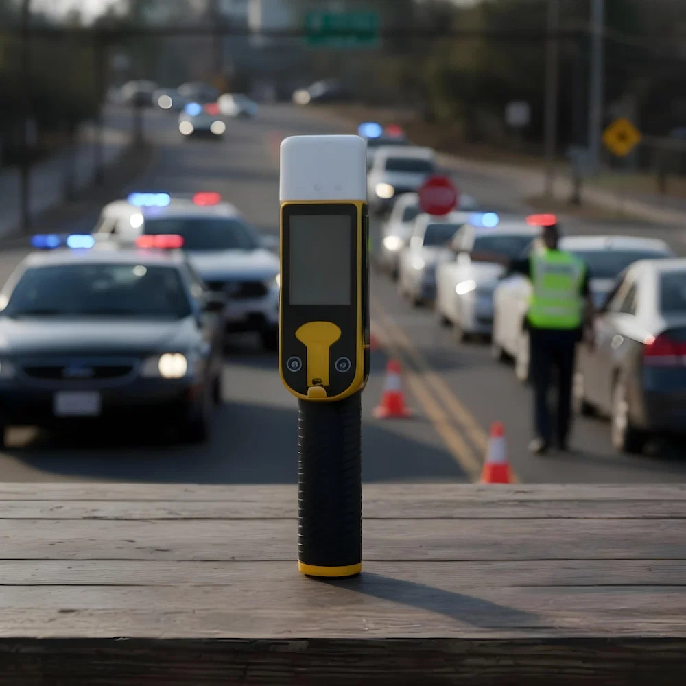- Cuando la pantalla del dispositivo muestra “Listo”, acerque el dispositivo con la boquilla para soplar uniformemente durante aprox. 5-6 segundos con un tono de señal continua “wing, wing, wing” mientras la cámara fotografía automáticamente al usuario, cuando escuche el sonido de “tic” y “¡Beep! Beep!”, entonces deje de soplar. El dispositivo tomará una muestra y la analizará.